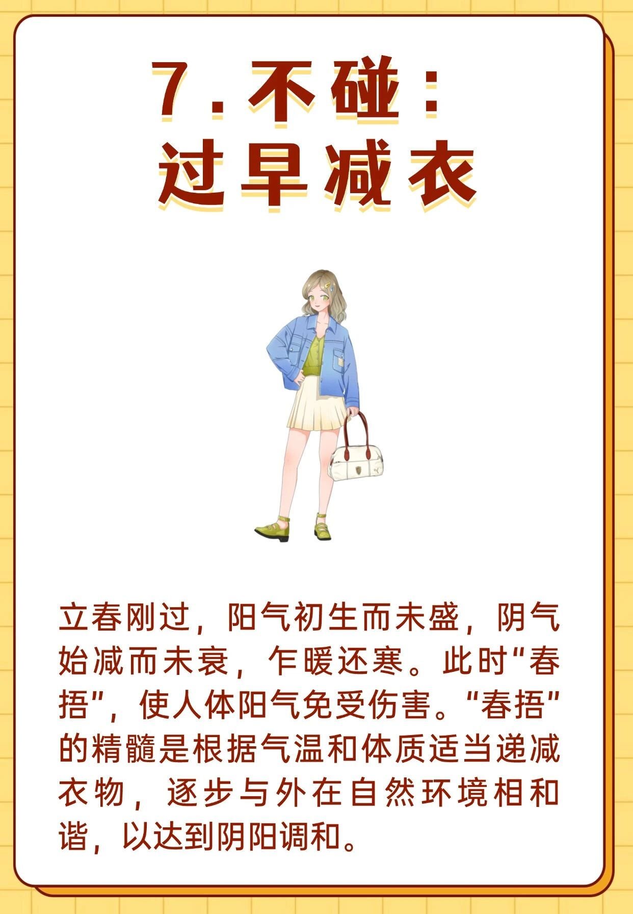”的转折点,要注意保护阳气。日常养生建议做到以下7不碰: