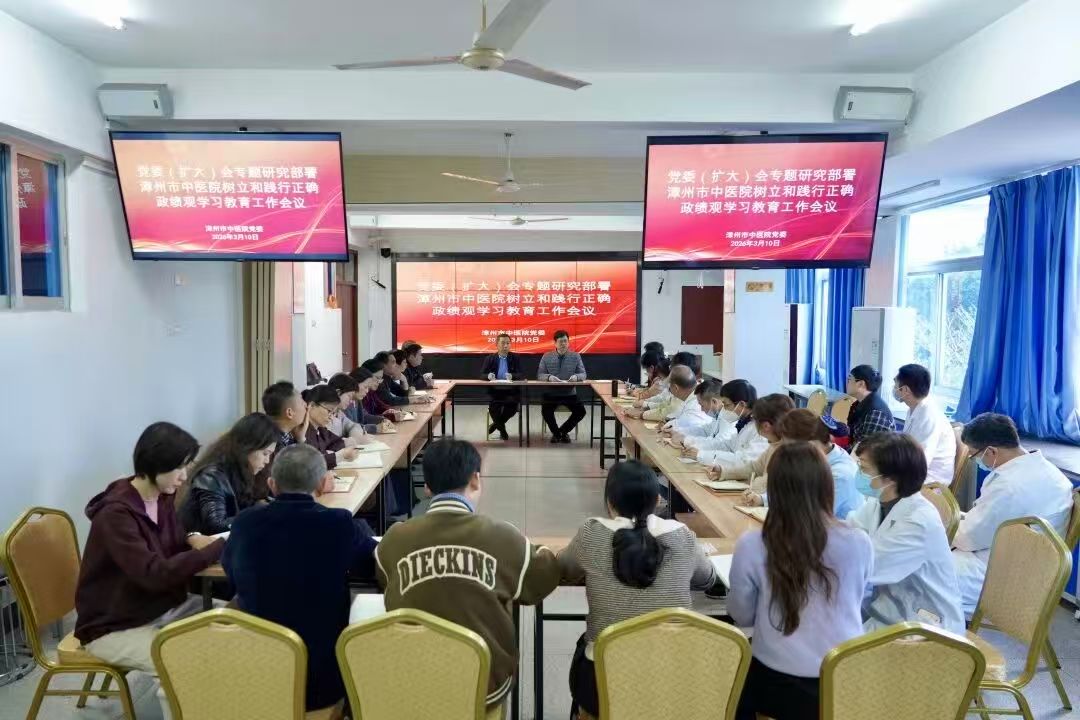 3月10日,漳州市中医院召开党委(扩大)会议,认真学习习近平总书记关于树立和践行正确政绩观学习教育的重要讲话和重要指示精神,传达学习中央、省委、市委、市卫健委会议精神,研究部署在全院启动树立和践行正确政绩观学习教育工作。院党委书记白正勇主持会议并作具体工作部署,党委副书记、院长林石明传达了上级重要精神。医院领导班子成员、各党支部书记、支部委员等40余人参加会议。