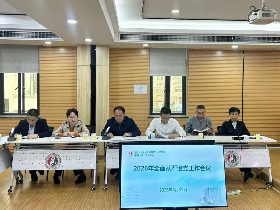 2026年3月31日,福建中医药大学附属第二人民医院召开2026年度全面从严治党工作会议,院党委书记周阳杰作全面从严治党工作报告,纪委书记陈奇慧主持会议并作纪委工作报告。全体院领导、中层干部、党支部书记、纪检委员参加会议。